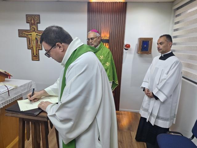 Ambos sacerdotes, colocando su mano sobre el Santo Evangelio, manifestaron públicamente su compromiso de creer y profesar con fe firme todas las verdades contenidas en el símbolo de la fe, y de cumplir con diligencia y fidelidad las obligaciones propias del ministerio que les ha sido confiado, en comunión con la Iglesia universal y con la Iglesia diocesana, conforme a lo establecido por el derecho canónico.