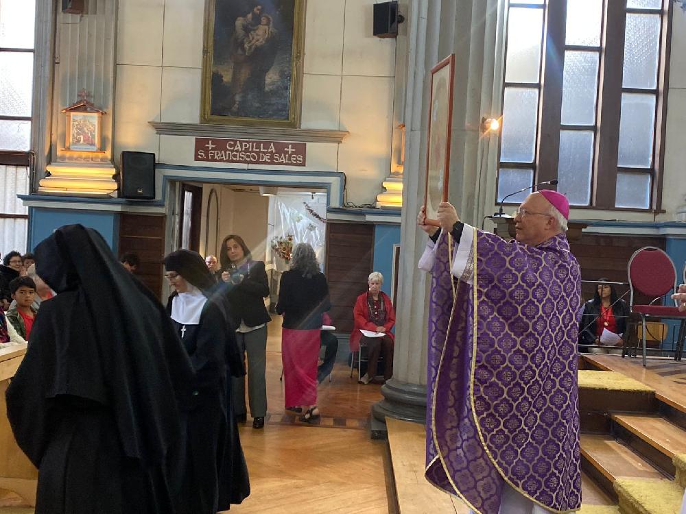 El Arzobispo de Puerto Montt, Fernando Ramos en su Homilia dijo que “hoy las hermanas que recibimos dejan de ser el segundo monasterio de la Visitación de Santiago para ser el Monasterio de la Visitación en Puerto Montt”.