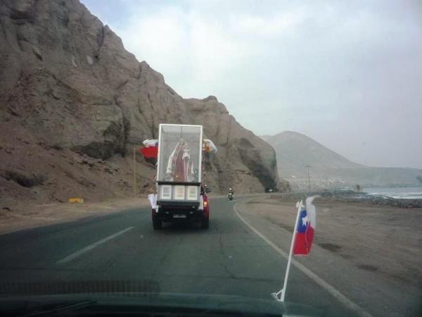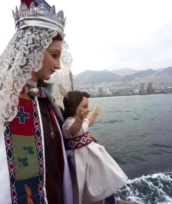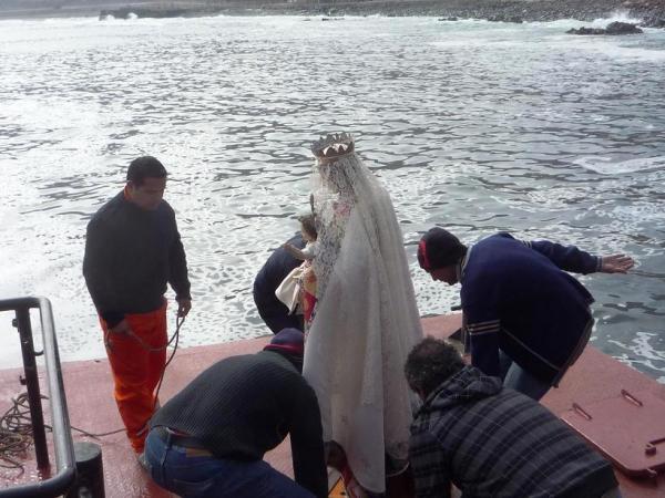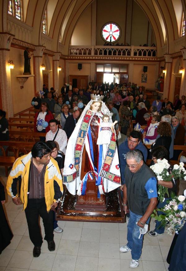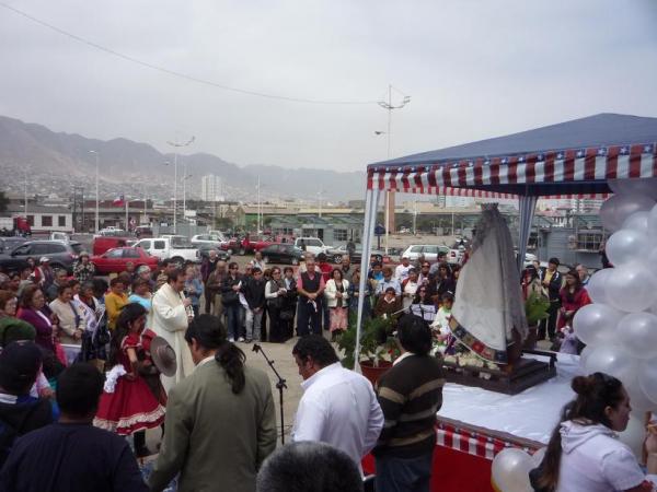 Desde ahí partió rumbo a la Parroquia Los Doce Apóstoles donde se le tenía preparada un pie de cueca, oraciones y una eucaristía a las 18:00 hrs. En la tarde, cerca de las 19:30, será recibida por la parroquia Nuestra Señora del Carmen, en donde se realizará una vigilia, la cual culminará a las 7 de la mañana cuando sea traslada a La Vega Central de Antofagasta.