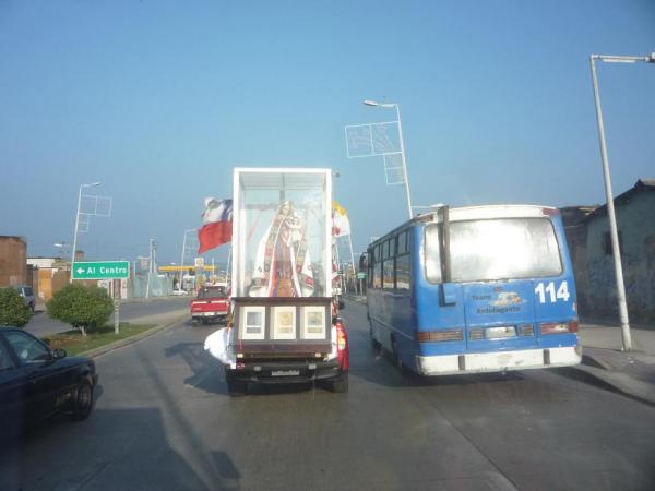 A las 8 de la mañana fue recibida por los comerciantes de La Vega Central, quienes compartieron en su lugar de trabajo su afecto por la Madre de Dios. Posteriormente, fue llevada hasta el Colegio Don Bosco, donde junto a los establecimientos de los alrededores, compartieron un Te Deum, la acción de gracias fue una oración para pedir por los estudiantes y las familias que se emplazan en las poblaciones de uno de los sectores más populares y vulnerables de Antofagasta.