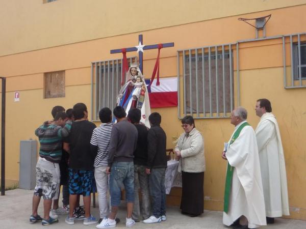 Desde ahí, fue llevada al Centro de Reclusión de Menores, en donde los adolescentes expresaron su amor a la imagen de la Virgen. Concluido este instante, fue llevada al sector de La Chimba, fue un encuentro de la imagen de la Virgen con los sectores más pobres de la ciudad, ahí se vivió un instante de profunda fe, ya que se oró especialmente para que se terminen las desigualdades sociales y todos puedan compartir con la misma dignidad de personas.