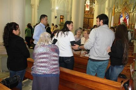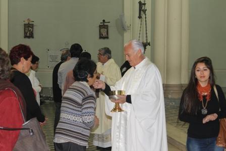 Acompañaron en el altar al Pastor, los sacerdotes Marcelo Pizarro y Juan Agustín Bravo, SJ, junto a gran cantidad de fieles.