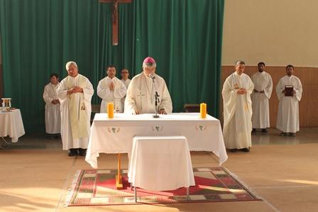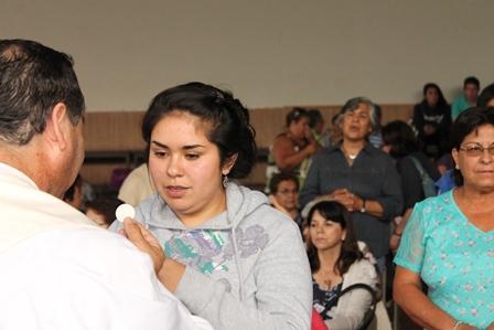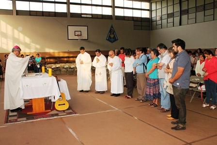 Para iniciar la actividad se celebró en el gimnasio del Instituto Santa María, una Eucaristía, oficiada por Monseñor Pablo Lizama.