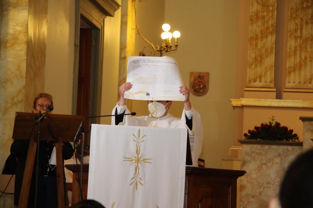 La ceremonia de toma de posesión continuó con la lectura de las Letras Apostólicas, que son una carta personal del Papa, dirigida al Obispo designado, en la que se comunica su elección como titular de la Diócesis. Por este mandato del Papa Francisco, Monseñor Guillermo Vera Soto fue nombrado Obispo de nuestra Diócesis.
