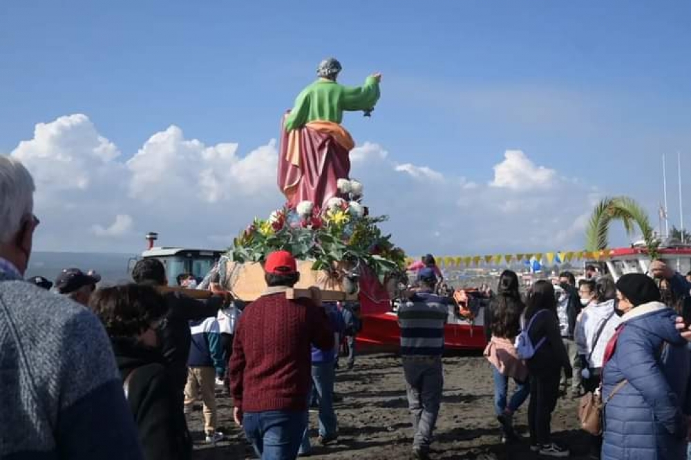Los asistentes también pudieron degustar ceviche de reineta, mariscal, vino navegado, chocolate caliente y sopaipillas. Mientras, se homenajeó a San Pedro con unos tradicionales pies de cueca.