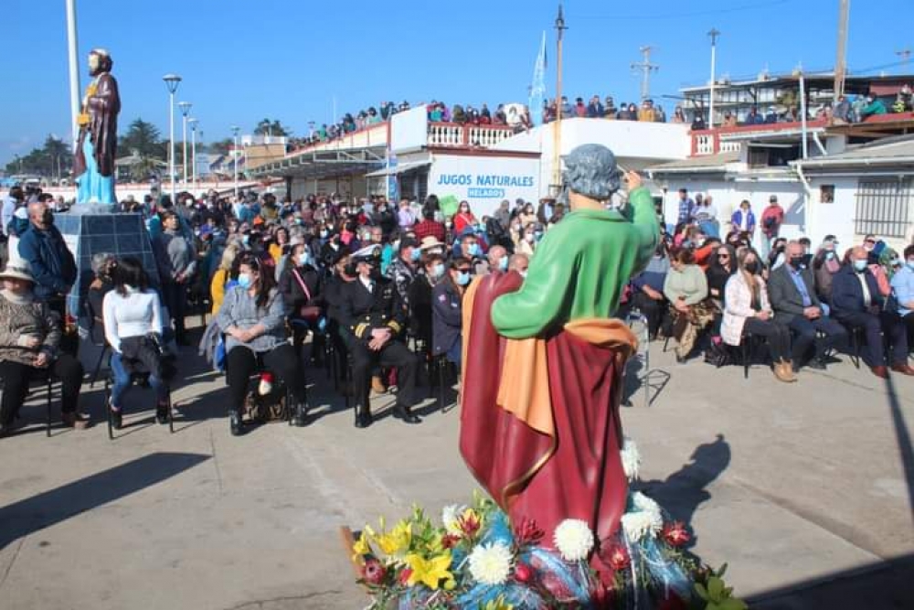 En la caleta La Puntilla se realizó la Santa Misa, celebrada por el padre Claudio Fuenzalida, párroco de Pichilemu. Para luego realizar la procesión del santo por la bahía.