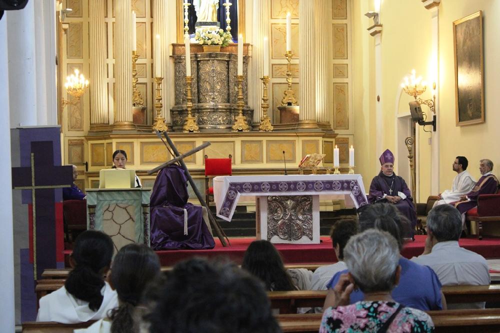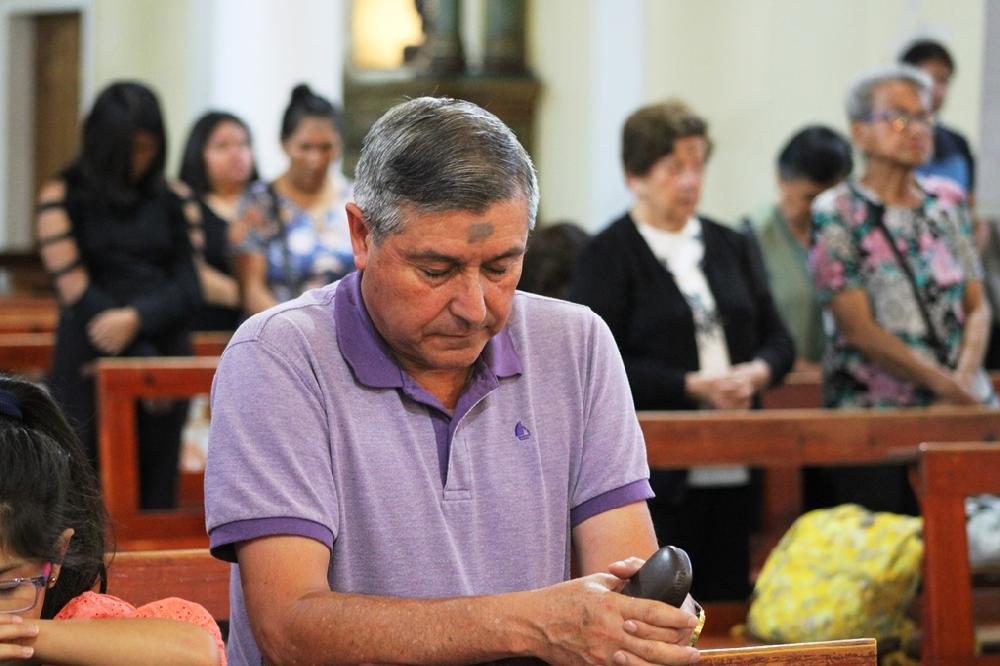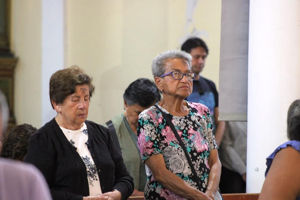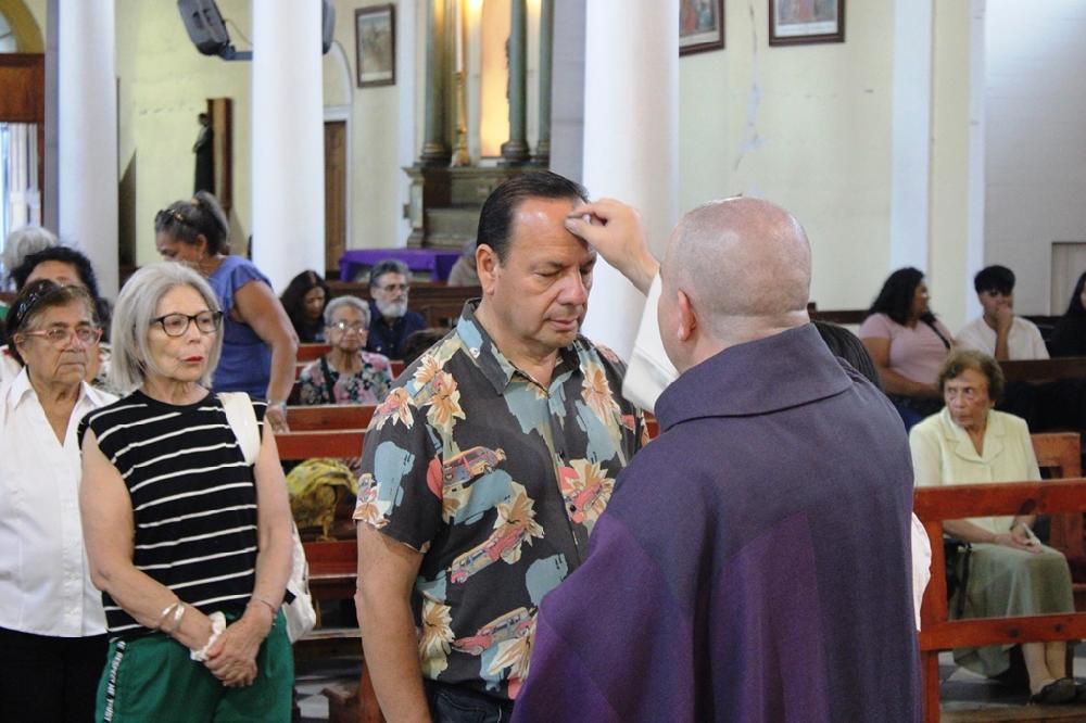 Tras la homilía, los feligreses recibieron la tradicional imposición de ceniza en la frente, un símbolo de penitencia y arrepentimiento. "Recuerda que eres polvo y al polvo volverás", dijo el obispo mientras trazaba la señal de la cruz con ceniza en las frentes de los fieles. Él también recibió este signo, de manos del diácono Ricardo Rojas, que lo acompañó en el altar.