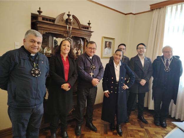En dependencias del Obispado de Valparaíso, autoridades diocesanas recibieron este lunes 21 de julio a la alcaldesa de Rapa Nui, Elizabeth Arévalo Pakarati, con el fin de continuar trabajando en conjunto en proyectos que vayan en beneficio de la educación de los niños en jardines infantiles y del bienestar de las personas mayores de la isla.