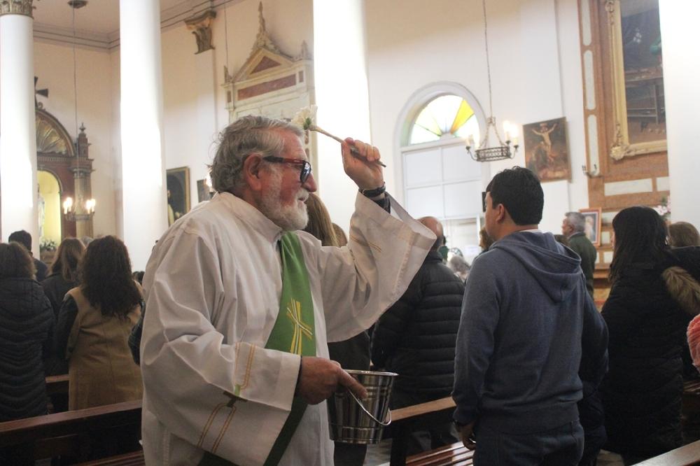 Siguiendo el mismo rito, el padre Guido hizo su profesión de fe y la promesa de fidelidad a la Iglesia. Luego de que el obispo bendijera el agua, el p. Guido y el p. Mario junto a don Iván rociaron el agua bendita a la comunidad.