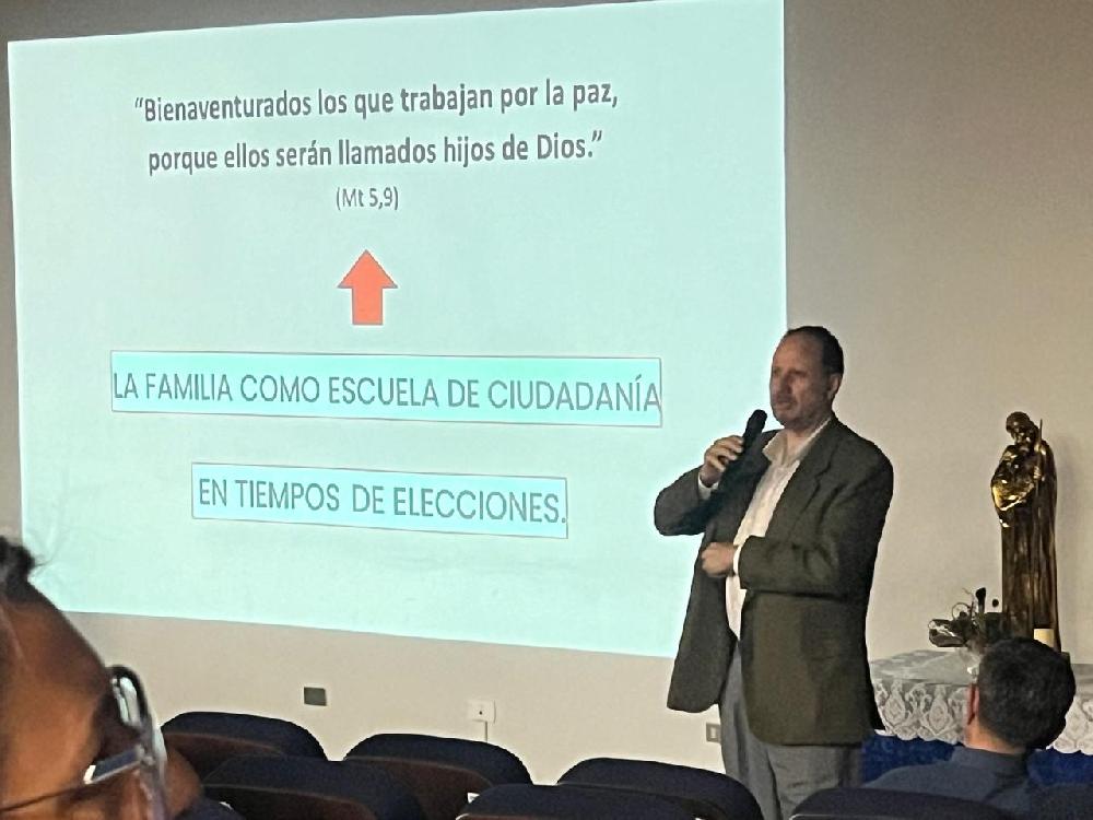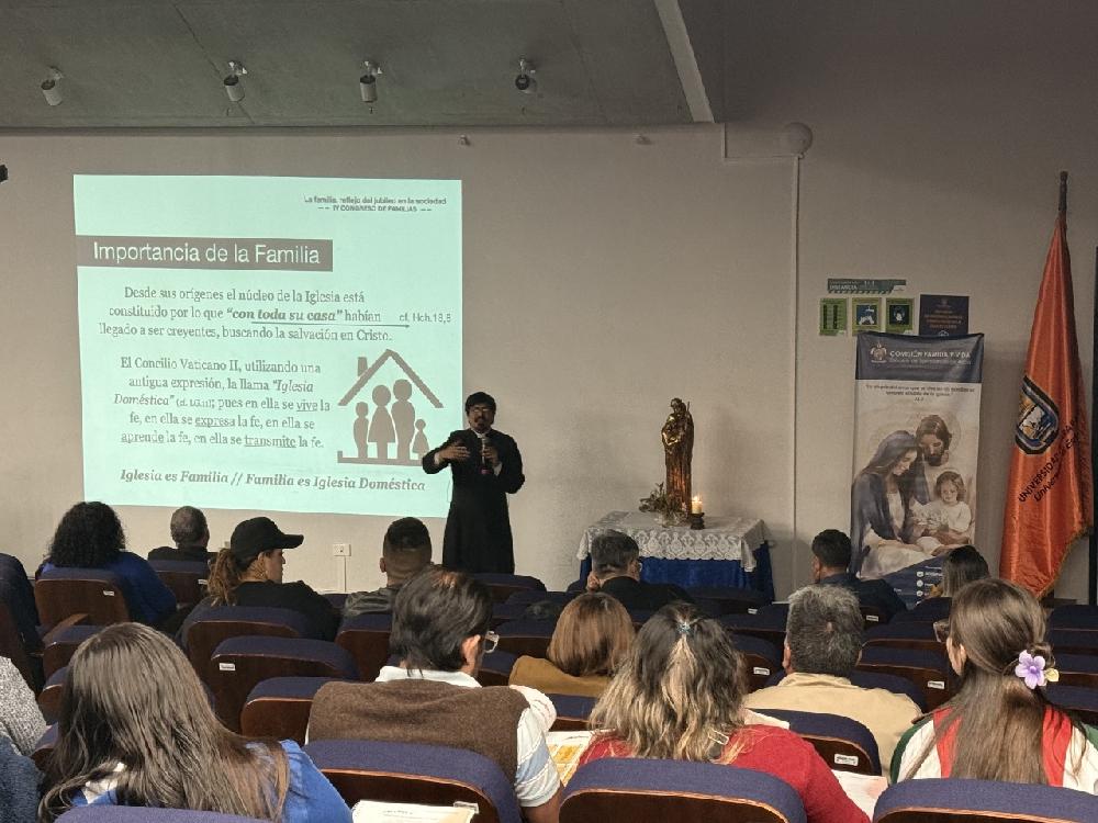 Con el objetivo de reforzar la conciencia de la familia como escuela de comunión, espacio de esperanza y testimonio del amor de Dios; la Comisión de Familia y Vida, organizadora del encuentro, dispuso el espacio en cuatro momentos temáticos. El primero de ellos fue titulado “El jubileo vivido en familia: misericordia, perdón, misión en lo cotidiano” a cargo del p. Jesús Apiolaza Fernández párroco de San Ignacio y de San Juan Bosco. El segundo, “Testimoniar la esperanza: familias que comunican el evangelio en lo público” estuvo a cargo de la académica de la Facultad de Educación y Humanidades de la UTA Rosa Elena Gamarra Amprimo. El tercer tema titulado “Educar para la paz: la familia como escuela de ciudadanía en tiempos de elecciones” lo realizó el Dr. Mauricio Echeverría Gálvez del Instituto de Estudios para la Familia de la Universidad San Sebastián.