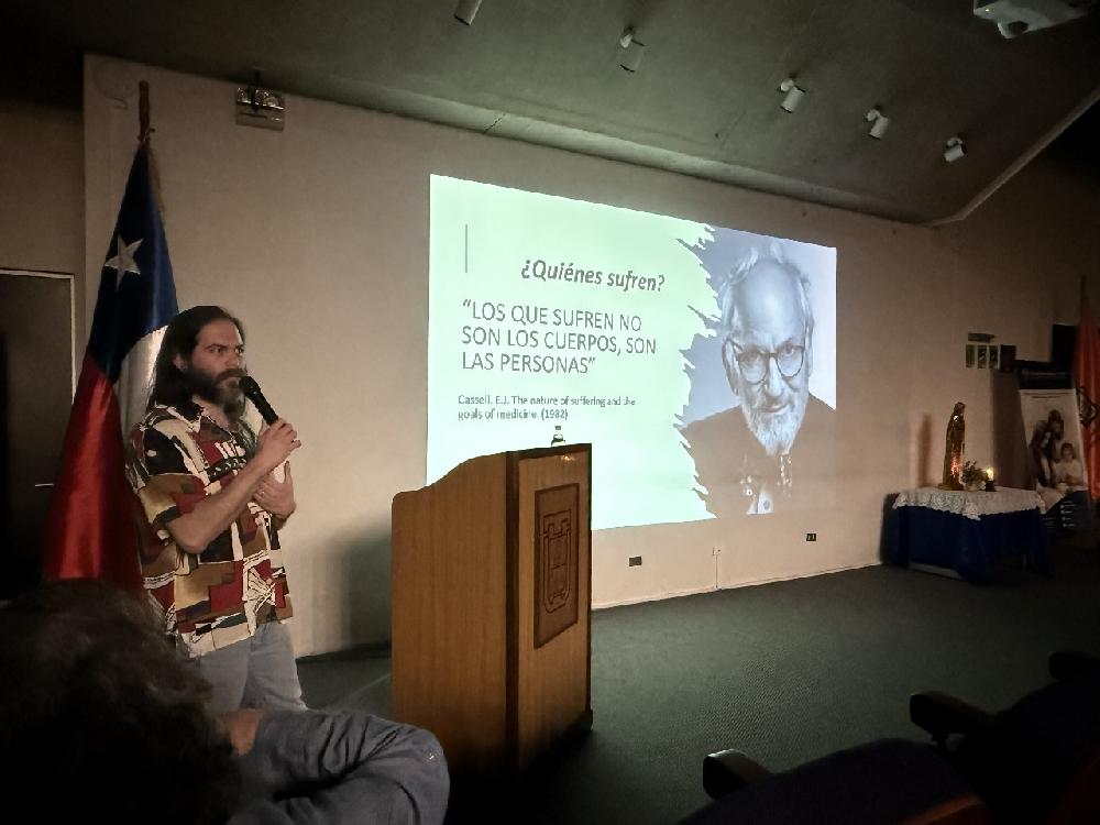 Finalmente, el cuarto momento fue dirigido por la Dra. Ana Miles Constenla Jefa de la Unidad de Cuidados Paliativos del Hospital Regional Juan Noe Crevani y el Dr. Felipe Ponce Correa académico de la Escuela de psicología de la UTA, el cual fue titulado: “Cuidar a quien cuida: la familia como red de apoyo para los que sostienen la fragilidad”.