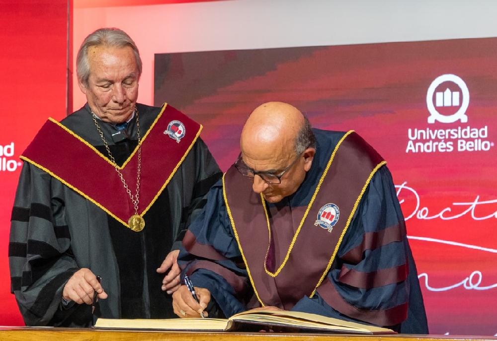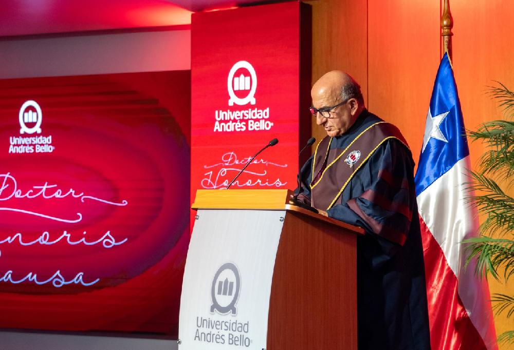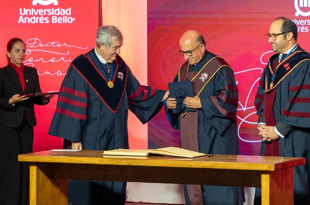 En una emotiva ceremonia realizada este martes 25 de noviembre en el Auditorio José María Aznar del Campus Casona de Las Condes, la Universidad Andrés Bello confirió su máxima distinción académica -el Doctorado Honoris Causa- al Cardenal y Arzobispo de Santiago, Fernando Chomal Garib.