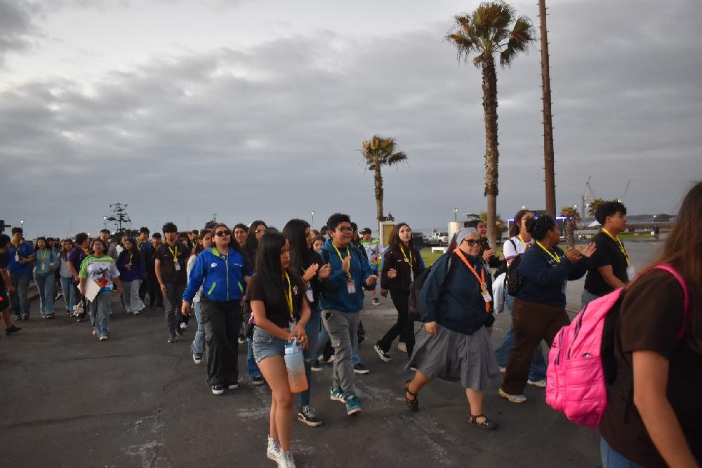 Tras un momento de descanso, la jornada continuó en la Ex Isla El Alacrán, un entorno privilegiado para contemplar la naturaleza y abrir el corazón a Dios. Allí se vivió un conmovedor momento de Adoración al Santísimo, donde Jesús Sacramentado fue expuesto para la oración personal y comunitaria. Muchos jóvenes, de rodillas, presentaron su vida a Cristo. En ese clima de silencio y recogimiento, también se ofreció el Sacramento de la Reconciliación, al cual numerosos participantes acudieron mientras continuaba la Adoración. Finalizado este momento, se emprendió una Peregrinación rumbo a la Catedral San Marcos.