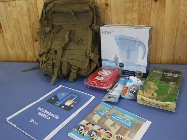 El kit de emergencia de eficiencia hídrica consiste en un conjunto de herramientas y materiales que permite ahorrar y gestionar el uso del agua de manera eficiente y segura, purificándola y filtrándola.