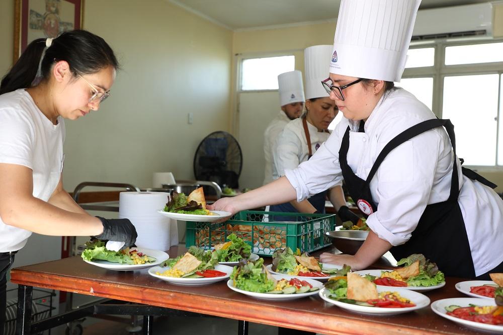 Se trató de una cena de tres tiempos, especialmente preparada para los asistentes. Carolina Astudillo, chef del Colegio Bicentenario Padre Alberto Hurtado, comentó que el trabajo se realizó junto a docentes y exalumnos de la especialidad de cocina.