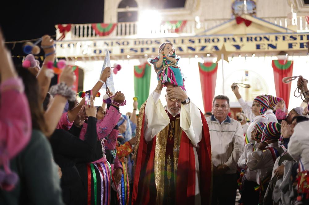 En la bendición final, el obispo elevó la imagen del Niño Dios e invitó a los fieles a levantar en alto sus imágenes del Emanuelito. Concluida la Eucaristía, se dio inicio a la procesión por las calles del pueblo, acompañada por cantos y danzas. Al finalizar el recorrido, se impartió la bendición final, se entonó el Himno Nacional y la imagen del Niño Dios fue depositada en su pesebre, cerrando una jornada marcada por la devoción, la identidad y la alegría del pueblo creyente.