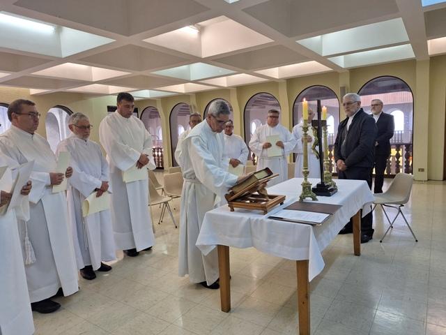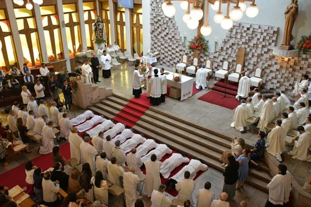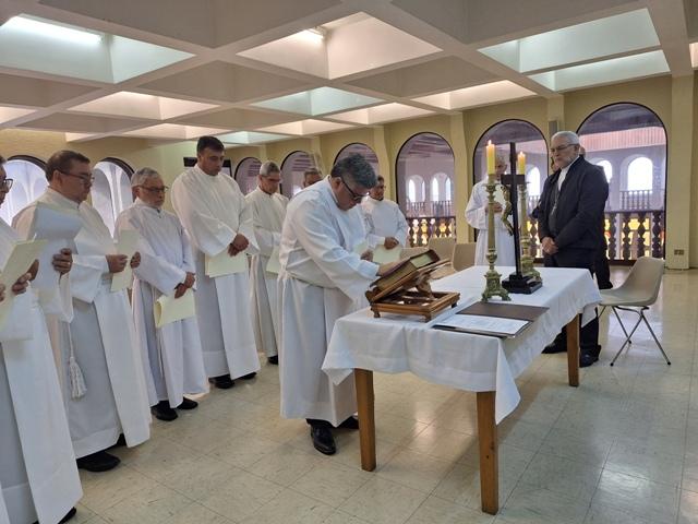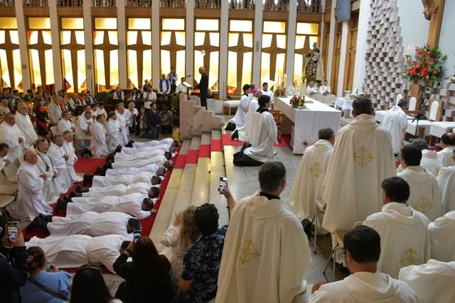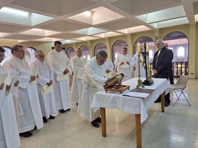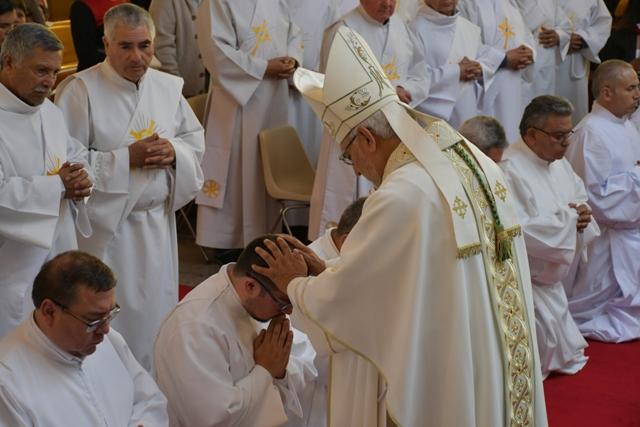 Al transcurrir la celebración, se efectuó el examen de los elegidos y las promesas de obediencia, seguido de las letanías de los santos. Luego, el obispo impuso las manos sobre cada uno de los elegidos y que indica la acción del Espíritu Santo junto a la oración consecratoria.