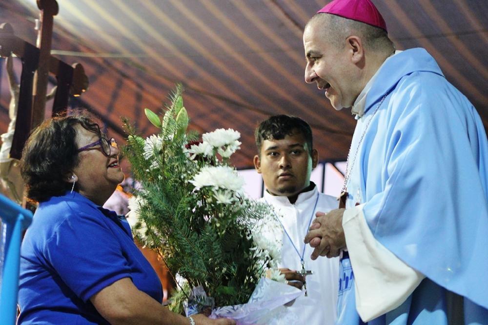 En el día en que se reza especialmente por los bailes religiosos, el obispo los invitó a ser luz. “Tenemos que ser capaces de vivir siendo luz, -dijo don Ricardo- la vida ni es fácil, hay diferencias, nos enojamos, pero siempre tiene que haber una palabra de perdón, de gracias, de permiso”. En el ofertorio, integrantes de bailes llevaron el pan y el vino, y un ramo de flores que se puso a los pies de la imagen de la Virgen.