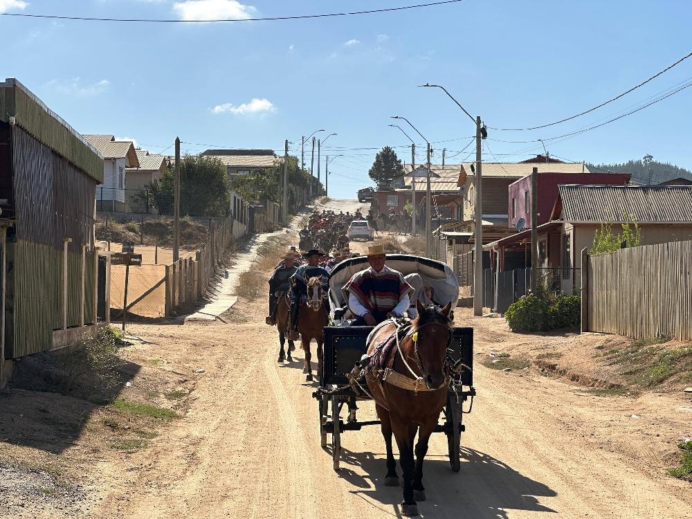 La bienvenida comenzó con un momento de adoración ante el Santísimo Sacramento, donde la comunidad puso en manos de Dios esta nueva etapa pastoral. Luego, frente al templo parroquial, esperaba una sorpresa preparada por los vecinos: cerca de 80 huasos a caballo y un carruaje especialmente dispuesto para acompañar a las religiosas en un recorrido por el pueblo.